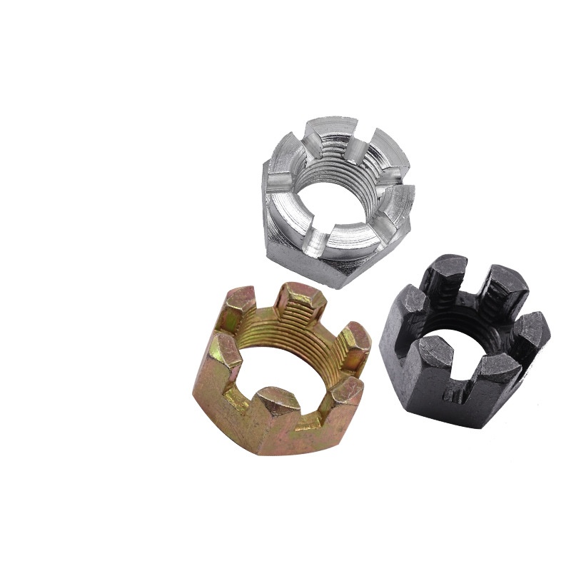 Kõrge pöördemomendi kroonimutter koos pesaga on spetsiaalne kinnitus, mida kasutatakse olulistel töödel, kus peate veenduma, et see püsib oma kohale lukustatud, isegi vibratsiooniga või kui see üritab väänata. See näeb välja nagu tavaline kuuskantmutter, kuid peal on silindriline krooniosa, mille sisse on lõigatud pesa. See pesa võimaldab teil seda tihedalt lukustada, kasutades Cotteri tihvti või turvajuhet. Need pähklid püsivad siis, kui tavalised pähklid võivad lahti saada, nii et need on üsna vajalikud raskete mehaaniliste seadistuste jaoks - eriti lennunduse, autode valmistamise ja raskete masinate jaoks, kus ohutus on tõesti oluline.