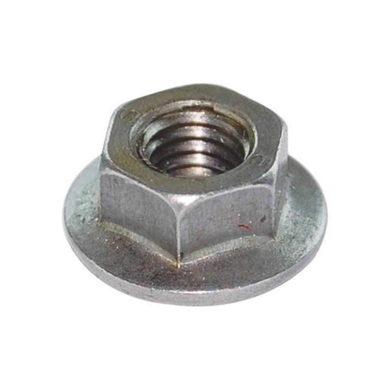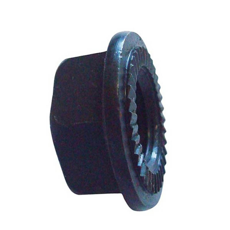 | Keskmise süsinikusisaldusega teras | Neid sakilise äärikuga kuusnurkseid lukustusmutreid saab kasutada autode vedrustuse komponentidel või haagise haakeseadmetel. Nende jaoks kasutatud teras on kuumtöödeldud, nii et sakiline konstruktsioon saab kindlalt haarduda ilma purunemata. Need taluvad vibratsiooni maanteel sõitmisel või raskeid koormusi ilma lahti tulemata. Tavaliselt on need kaetud paksema tsingikihiga. |